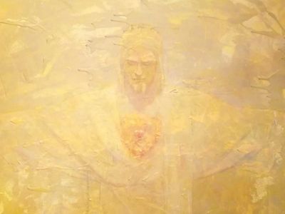 Each painting reflects a stage in the movement of Christic frequency through the realms of atonement, sorrow, triumph, and embodiment.